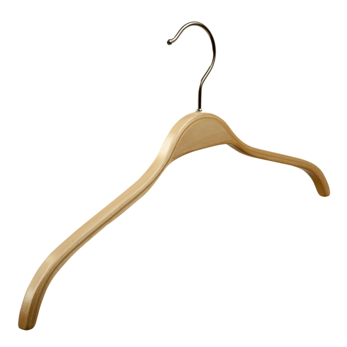 Kleiderbügel CL 147 ✓ Kleiderbügel natur lackiert ✓ vernickelter Haken, drehbar ✓ sehr leicht und platzsparend ✓ Flachbügel mit kleinem Kopf ✓ elegantes ansprechendes Design ✓ die Auflagebreite beträgt 12 mm ✓ Schichtholzbügel aus Lotusholz ✓ erhältlich in den Breiten 46 cm.