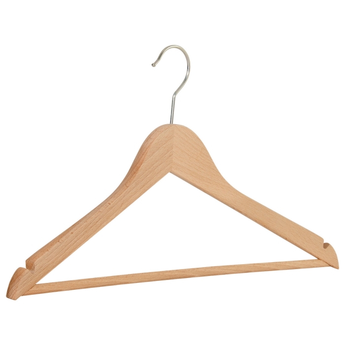 Kleiderbügel ECO 3326 natur roh ✓ Formbügel aus Massivholz ✓ der Kleiderbügel ist körpergeformt ✓ Bucheholz natur roh unlackiert ✓ mit Rockeinkerbungen und Riffelsteg ✓ die Bügelbreite beträgt 45 cm ✓ drehbarer, verchromter Haken ✓ die Hakenöffnung beträgt 40 mm ✓ der Bügel hat eine Auflagenbreite 12 mm