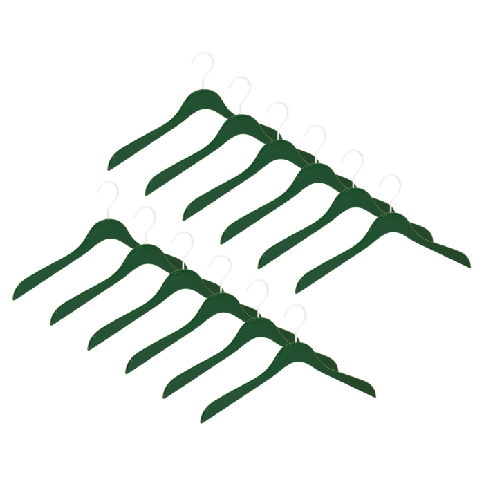 12er Kleiderbügel Set ECO 6600 renngrün w ✓ 12er Set ✓ in der Farbe renngrün lackiert ✓ aus Buchenholz gefertigt ✓ Haken 4 mm weiß lackiert, drehbar ✓ die Hakenöffnung beträgt 40 mm ✓ die Auflagenbreite beträgt 13 mm ✓ flache platzsparende Kleiderbügelform ✓ die Kleiderbügelbreite beträgt 44,5 cm