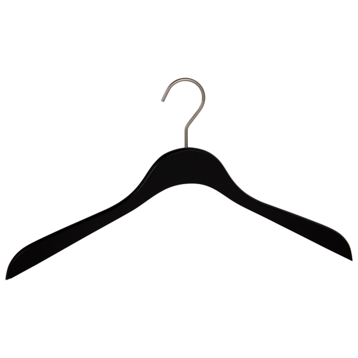 Kleiderbügel ECO 6600 schwarz n ✓ in der Farbe schwarz lackiert ✓ aus Buchenholz gefertigt ✓ Haken 4 mm matt vernickelt, drehbar ✓ die Hakenöffnung beträgt 40 mm ✓ die Auflagenbreite beträgt 13 mm ✓ flache platzsparende Kleiderbügelform ✓ die Kleiderbügelbreite beträgt 44,5 cm