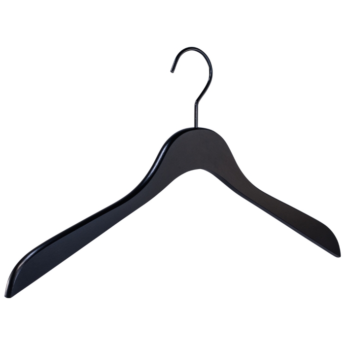 Kleiderbügel ECO 6600 schwarz s ✓ in der Farbe schwarz lackiert ✓ Haken 4 mm schwarz, drehbar ✓ aus Buchenholz gefertigt ✓ die Hakenöffnung beträgt 40 mm ✓ Kleiderbügel komplett in schwarz ✓ die Auflagenbreite beträgt 13 mm ✓ flache platzsparende Kleiderbügelform ✓ die Kleiderbügelbreite beträgt 44,5 cm