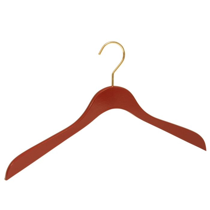 Kleiderbügel ECO 6600 schwedenrot m ✓ in der Farbe schwedenrot lackiert ✓ aus Buchenholz gefertigt ✓ Haken 4 mm vermessingtem, drehbar ✓ die Hakenöffnung beträgt 40 mm ✓ die Auflagenbreite beträgt 13 mm ✓ flache platzsparende Kleiderbügelform ✓ die Kleiderbügelbreite beträgt 44,5 cm