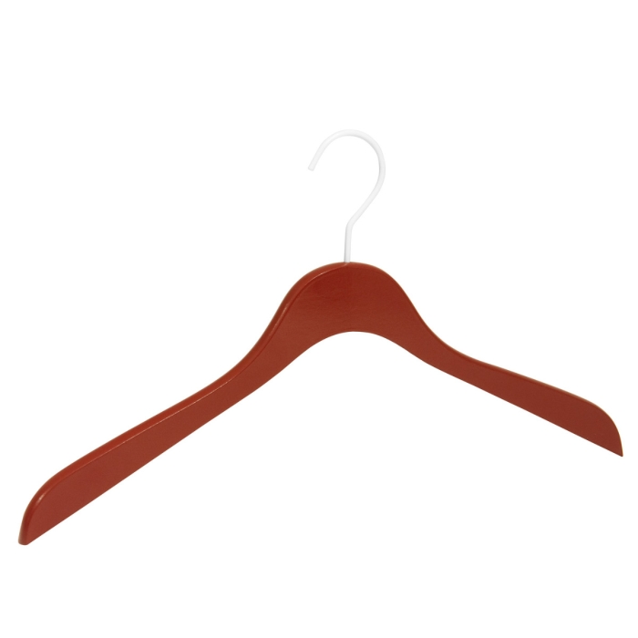 Kleiderbügel ECO 6600 schwedenrot w ✓ in der Farbe schwedenrot lackiert ✓ aus Buchenholz gefertigt ✓ Haken 4 mm weiß lackiert, drehbar ✓ die Hakenöffnung beträgt 40 mm ✓ die Auflagenbreite beträgt 13 mm ✓ flache platzsparende Kleiderbügelform ✓ die Kleiderbügelbreite beträgt 44,5 cm