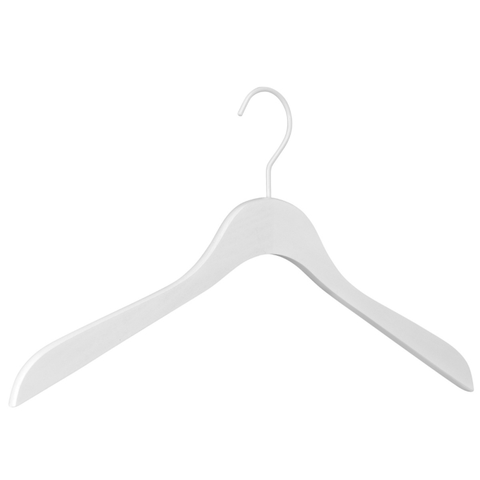 Kleiderbügel ECO 6600 Premium weiß w ✓ in der Farbe weiß lackiert ✓ aus Buchenholz gefertigt ✓ Höhe des Haken: 8,8 cm ✓ die Hakenöffnung beträgt 45 mm ✓ Haken 4 mm, weiß lackiert, drehbar ✓ die Auflagenbreite beträgt 13 mm ✓ die Kleiderbügelbreite beträgt 44,5 cm ✓ flache platzsparende Kleiderbügelform ✓ ideal für T-shirts, Blusen, Hemden, uvm.