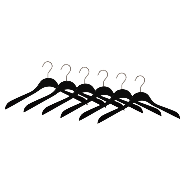 6er Kleiderbügel Set ECO 6600 schwarz n ✓ 6er Set ✓ in der Farbe schwarz lackiert ✓ aus Buchenholz gefertigt ✓ Haken 4 mm matt vernickelt, drehbar ✓ die Hakenöffnung beträgt 40 mm ✓ die Auflagenbreite beträgt 13 mm ✓ flache platzsparende Kleiderbügelform ✓ die Kleiderbügelbreite beträgt 44,5 cm