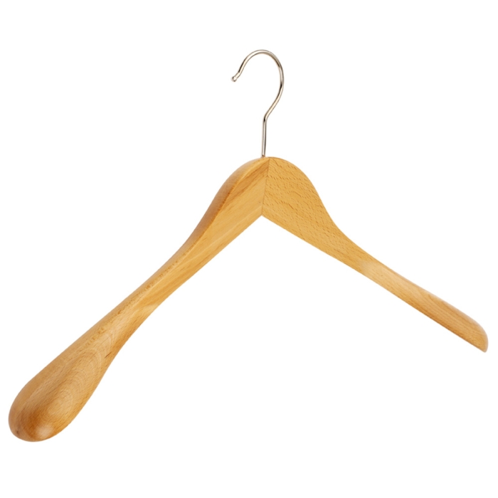 Kleiderbügel ECO 7209c natur ✓ Material buche Massivholz ✓ Kugelhaken 3,4 mm vernickelt ✓ der Haken ist 360° drehbar ✓ Kleiderbügel in gewinkelter Form ✓ die Bügelbreite beträgt 45 cm ✓ die Auflagebreite beträgt 45 mm