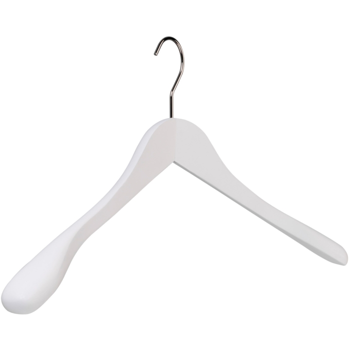 Kleiderbügel ECO 7209c weiß ✓ Haken 4mm silber glänzend ✓ Kleiderbügel in gewinkelter Form ✓ aus Massivholz gefertigt, weiß lackiert ✓ in weiß oder schwarz lackiert erhältlich ✓ erhältlich in einer Bügelbreite von 45 cm ✓ der Kleiderbügel hat eine Auflagebreite von ca. 40 mm
