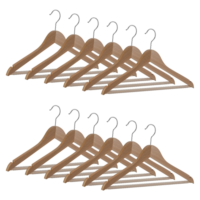 12er Kleiderbügel Set ECO Business RE RFS natur n ✓ 12er Set ✓ Formbügel aus Buchenholz ✓ die Hakenöffnung beträgt 40 mm ✓ gewinkelte Kleiderbügelform ✓ in der Farbe Buche natur lackiert ✓ drehbarer 3,4 mm Haken, vernickelt ✓ die Auflagenbreite beträgt 12 mm ✓ die Kleiderbügelbreite beträgt 44 cm ✓ Holzkleiderbügel körpergerecht geformt ✓ mit Hosensteg, rutschfest ummantelt ✓ mit Rockeinkerbungen an den Seiten ✓ das Gewicht des Kleiderbügels beträgt ca. 155 g