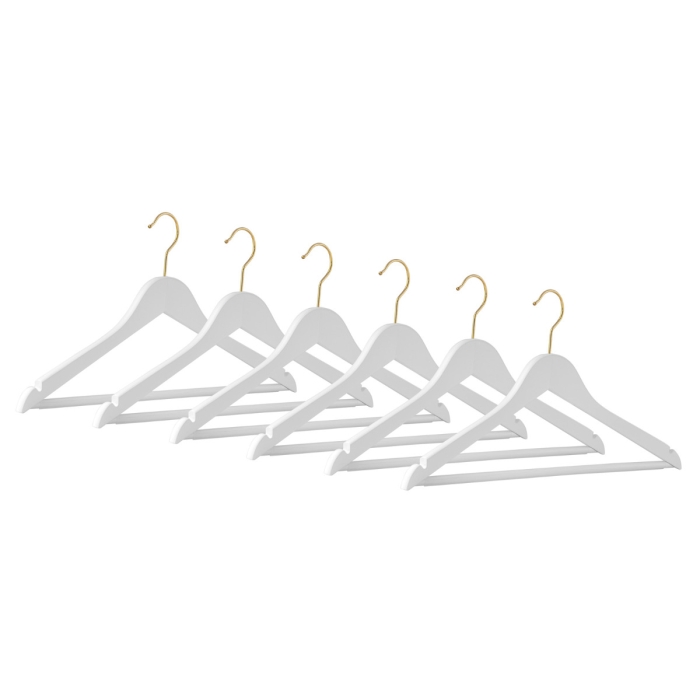 Der Kleiderbügel ECO Business RE RFS in edlem Weiß mit einem vermessingten Haken vereint stilvolles Design mit hoher Funktionalität. Unser 6er-Set von Bügeln bietet die ideale Lösung, um Platz in Ihrem Kleiderschrank zu schaffen und Ihre Garderobe effizient zu organisieren.
