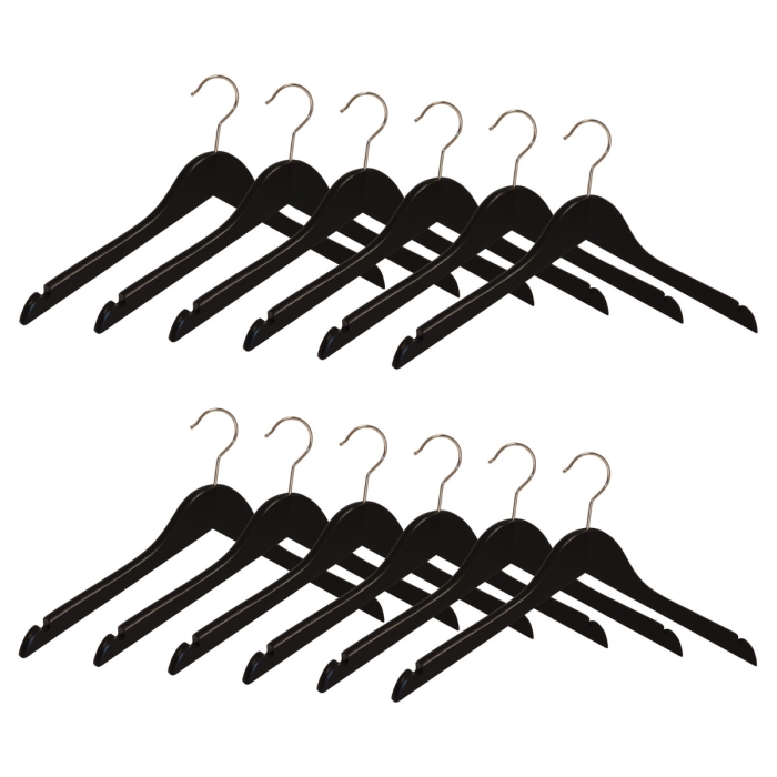 12er Kleiderbügel Set ECO Business RE schwarz n ✓ 12er Set ✓ Formbügel aus Buchenholz ✓ die Hakenöffnung beträgt 40 mm ✓ gewinkelte Kleiderbügelform ✓ drehbarer 3,4 mm Haken, vernickelt ✓ die Auflagenbreite beträgt 12 mm ✓ die Kleiderbügelbreite beträgt 44 cm ✓ Holzkleiderbügel körpergerecht geformt ✓ mit Rockeinkerbungen an den Seiten ✓ Kleiderbügel in der Farbe schwarz lackiert ✓ das Gewicht des Kleiderbügels beträgt ca. 120 g
