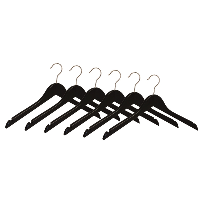 6er Kleiderbügel Set ECO Business RE schwarz n ✓ 6er Set ✓ Formbügel aus Buchenholz ✓ die Hakenöffnung beträgt 40 mm ✓ gewinkelte Kleiderbügelform ✓ drehbarer 3,4 mm Haken, vernickelt ✓ die Auflagenbreite beträgt 12 mm ✓ die Kleiderbügelbreite beträgt 44 cm ✓ Holzkleiderbügel körpergerecht geformt ✓ mit Rockeinkerbungen an den Seiten ✓ Kleiderbügel in der Farbe schwarz lackiert ✓ das Gewicht des Kleiderbügels beträgt ca. 120 g