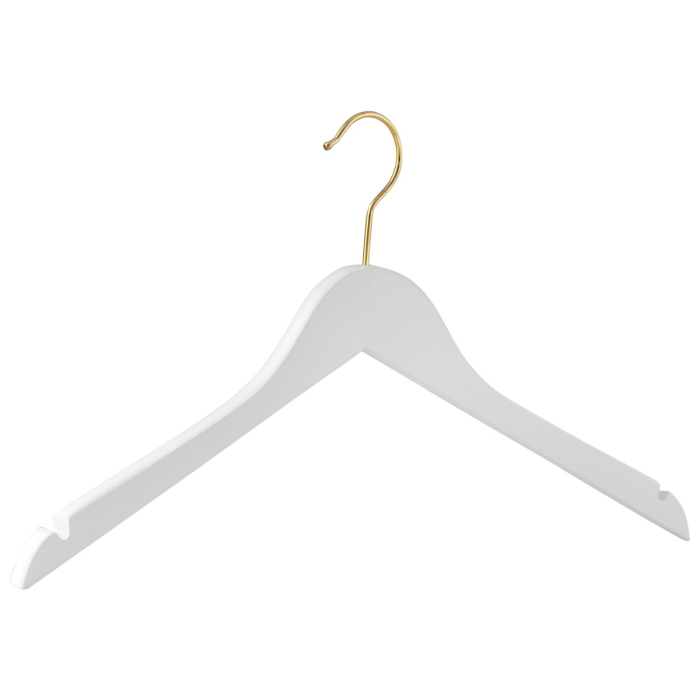 Der Kleiderbügel ECO Business in strahlendem Weiß mit vermessingten Haken vereint nicht nur stilvolles Design und Funktionalität, sondern erfüllt auch höchste Ansprüche an Qualität und Langlebigkeit.