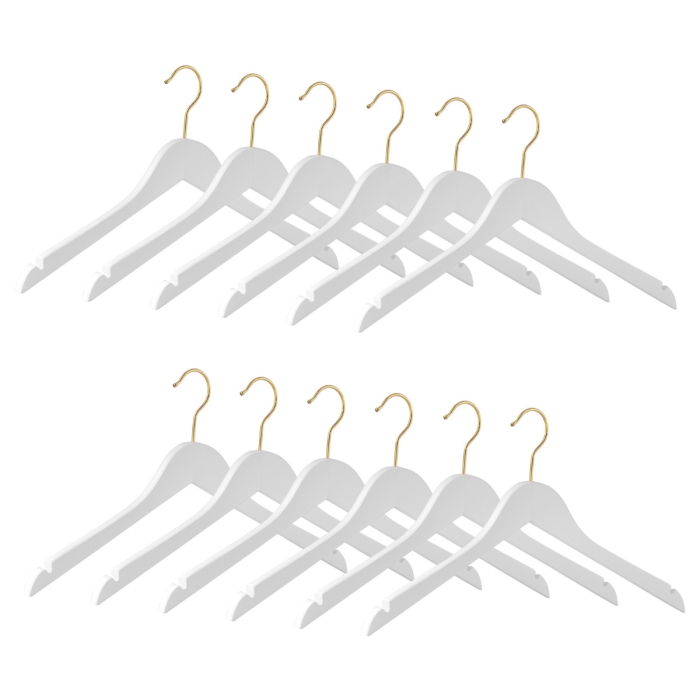 Der Kleiderbügel ECO Business RE in reinem Weiß mit Haken in vermessingtem Finish ist die optimale Lösung, um Ihre Garderobe stilvoll und praktisch zu organisieren. Unser 12er-Set dieser erstklassigen Bügel ist der ultimative Begleiter für alle, die Wert auf Stil und Organisation legen.