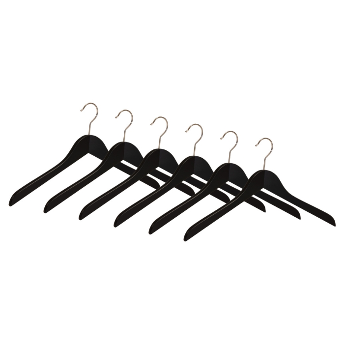 6er Kleiderbügel Set ECO Business schwarz n ✓ 6er Set ✓ Formbügel aus Buchenholz ✓ die Hakenöffnung beträgt 40 mm ✓ gewinkelte Kleiderbügelform ✓ drehbarer 3,4 mm Haken, vernickelt ✓ die Auflagenbreite beträgt 12 mm ✓ die Kleiderbügelbreite beträgt 44 cm ✓ Kleiderbügel in der Farbe schwarz lackiert ✓ Holzkleiderbügel körpergerecht geformt ✓ das Gewicht des Kleiderbügels beträgt ca. 125 g