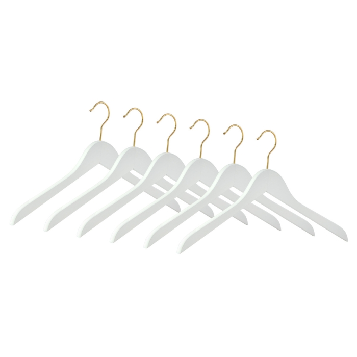 6er Kleiderbügel Set ECO Business weiss m ✓ 6er Set ✓ Formbügel aus Buchenholz ✓ die Hakenöffnung beträgt 40 mm ✓ gewinkelte Kleiderbügelform ✓ drehbarer 3,4 mm Haken, vermessingt ✓ die Auflagenbreite beträgt 12 mm ✓ die Kleiderbügelbreite beträgt 44 cm ✓ Kleiderbügel in der Farbe weiss lackiert ✓ Holzkleiderbügel körpergerecht geformt ✓ das Gewicht des Kleiderbügels beträgt ca. 125 g