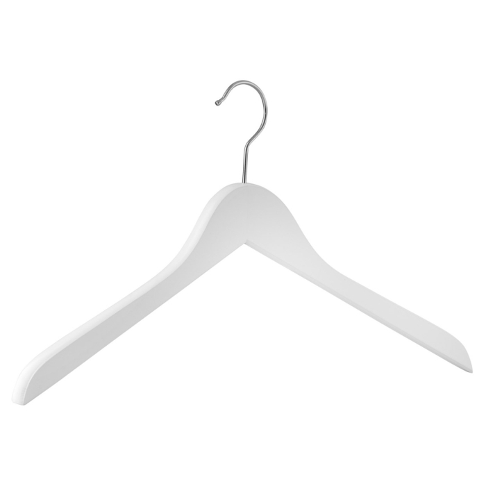 Kleiderbügel ECO Business weiss n ✓ Formbügel aus Buchenholz ✓ die Hakenöffnung beträgt 40 mm ✓ gewinkelte Kleiderbügelform ✓ drehbarer 3,4 mm Haken, vernickelt ✓ die Auflagenbreite beträgt 12 mm ✓ die Kleiderbügelbreite beträgt 44 cm ✓ Kleiderbügel in der Farbe weiss lackiert ✓ Holzkleiderbügel körpergerecht geformt ✓ das Gewicht des Kleiderbügels beträgt ca. 125 g