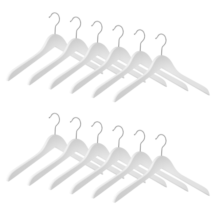 12er Kleiderbügel Set ECO Business weiss n ✓ 12er Set ✓ Formbügel aus Buchenholz ✓ die Hakenöffnung beträgt 40 mm ✓ gewinkelte Kleiderbügelform ✓ drehbarer 3,4 mm Haken, vernickelt ✓ die Auflagenbreite beträgt 12 mm ✓ die Kleiderbügelbreite beträgt 44 cm ✓ Kleiderbügel in der Farbe weiss lackiert ✓ Holzkleiderbügel körpergerecht geformt ✓ das Gewicht des Kleiderbügels beträgt ca. 125 g