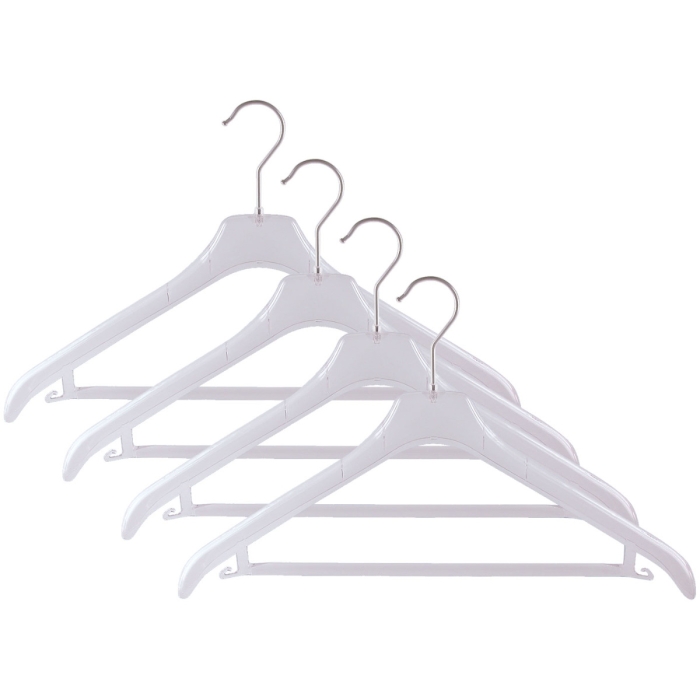 Kleiderbügel F 2 Steg Sparpaket ✓ Kunststoffbügel in transparent ✓ verzinkter und drehbarer Haken ✓ die Auflagebreite beträgt 20 mm ✓ Kleiderbügel im Mega-Sparpaket ✓ nach CCG Richtlinien hergestellt ✓ erhältlich in einer Breite von 49 cm ✓ in klarglas Optik mit Rockhäkchen und Steg ✓ die Gesamthöhe des Bügels beträgt 30 cm