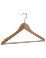 Kleiderbügel Business RE ✓ drehbarer Haken, vernickelt ✓ der Kleiderbügel ist körpergeformt ✓ die Hakenöffnung beträgt 40 mm ✓ in der Farbe Buche natur lackiert ✓ Kombi-Formbügel aus Massivholz ✓ ungebrochene Kantenausführung ✓ die Auflagenbreite beträgt 14 mm ✓ mit Rockeinkerbungen an den Seiten ✓ der Kleiderbügel hat eine Breite von 45 cm ✓ die Gesamthöhe des Bügels beträgt 25 cm ✓ das Gewicht des Kleiderbügels beträgt ca. 145g