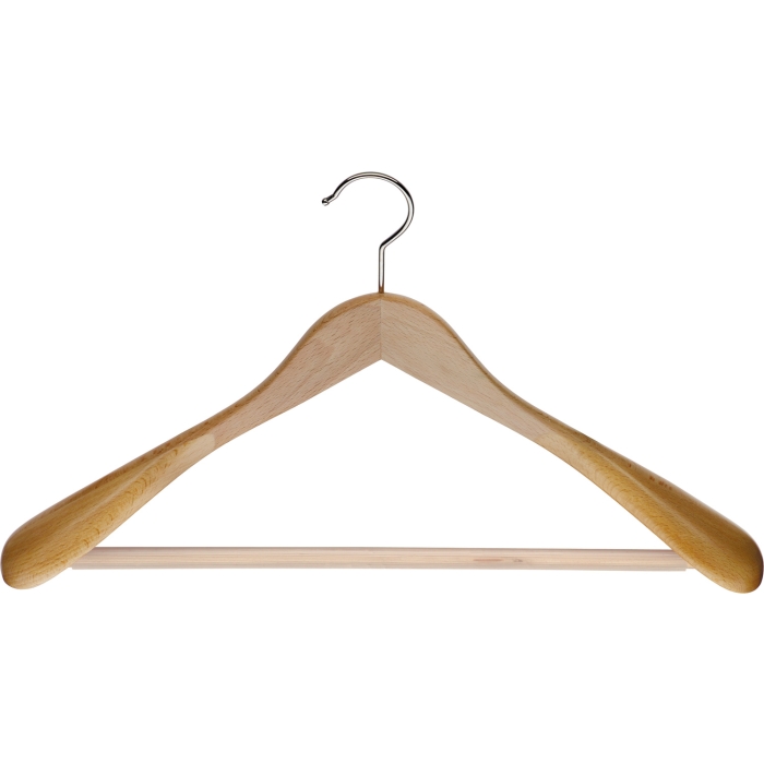 Kleiderbügel MAWA Capitano RFS ✓ drehbarer, vernickelter Haken ✓ verbreiterte Schulterenden ✓ die Hakenöffnung beträgt 40 mm ✓ in der Farbe Buche natur lackiert ✓ Kleiderbügel ist körpergeformt ✓ die Auflagenbreite beträgt 40 mm ✓ der Kleiderbügel besitzt eine Breite von 45 cm ✓ Komfort-Formbügel mit rutschfestem Holzsteg ✓ die Gesamthöhe des Bügels beträgt 26 cm ✓ das Gewicht des Kleiderbügels beträgt ca. 285g