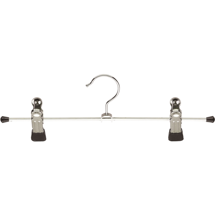 Der Klammernhalter verfügt über einen stabilen Hochkant-Stahlprofilsteg mit drehbarem Haken. Ausgestattet ist der Kleiderbügel mit zwei verschiebbaren rutschhemmend ummantelten Clips mit Endschutzkappen. Erhältlich in den Farben schwarz, und silber Die Klemmbügelbreite beträgt wahlweise 17 cm, 30 cm oder 40 cm. Der Kleiderbügel eignet sich bestens für Accessoires, Kinderbekleidung, Tücher und Schals sowie Gürtel und Schuhe aller Art. Kleiderbügel-Spitzenqualität "Made in Germany".