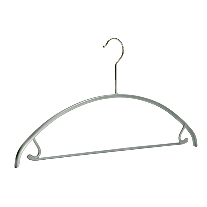 Dieser Universal-Kleiderbügel aus profiliertem Stahlband ist plangeformt, ganzflächig rutschhemmend ummantelt und verfügt über einen drehbaren Haken. Ausgestattet ist der Kleiderbügel mit Hosensteg und integriertem Rockhaken. Erhältlich in den Farben schwarz, dunkelblau, weiß und silber. Die Bügelbreite beträgt 42 cm. Auflagenbreite: 10 mm. Der Kleiderbügel eignet sich bestens für Oberbekleidung, Anzüge, Kostüme, Röcke aller Art, Tücher und Schals. Kleiderbügel-Spitzenqualität "Made in Germany".