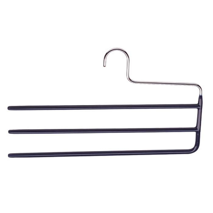 Der verchromte Hosenbügel KH 3 besteht aus 4,6 mm massivem Rundstahl und verfügt über eine Auflagenbreite von 7 mm. Der Hosenbügel besitzt drei rutschhemmend ummantelte Stege und ist erhältlich in den Farben schwarz, dunkelblau und silber. Die Kleiderbügelbreite beträgt 35 cm. Der Kleiderbügel eignet sich für Hosen aller Art und Länge sowie für Tücher und Schals. Kleiderbügel-Spitzenqualität "Made in Germany"