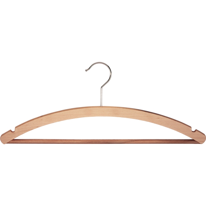 Kleiderbügel Standard RES natur ✓ mit abgesenkten Enden ✓ die Hakenöffnung beträgt 42 mm ✓ drehbarer Haken, vernickelt ✓ Kleiderbügel ist plangeformt ✓ mit Rockkerben an den Seiten ✓ in der Farbe Buche natur lackiert ✓ Kombi-Flachbügel aus Massivholz ✓ die Bügelbreite beträgt 42 cm ✓ die Auflagenbreite beträgt 8 mm ✓ die Gesamthöhe des Bügels beträgt 15 cm ✓ das Gewicht des Kleiderbügels beträgt ca. 76g ✓ Kombi-Flachbügel aus Massivholz mit Holzsteg