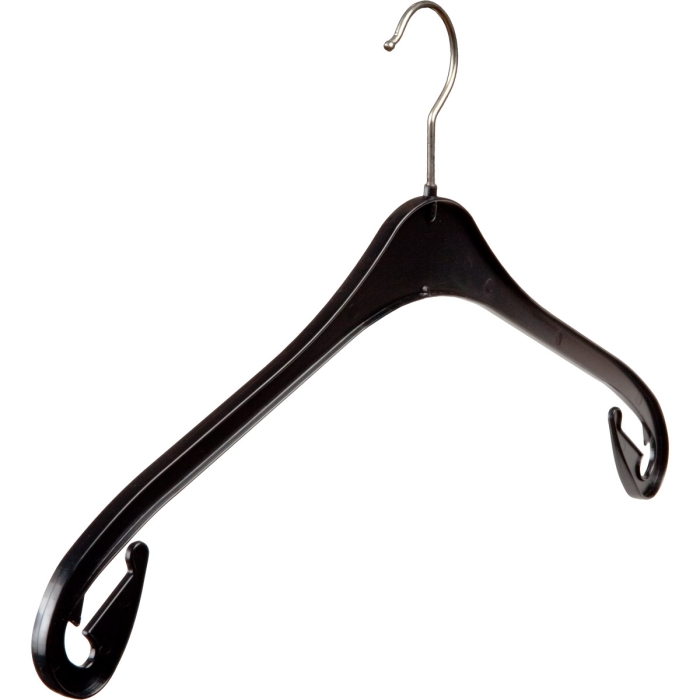 Kleiderbügel NA 47 schwarz ✓ Kunststoffbügel in schwarz ✓ Wäschebügel aus Kunststoff ✓ verzinkter und drehbarer Haken ✓ mit Rockhaken an der Unterseite ✓ die Auflagenbreite beträgt 8 mm ✓ erhältlich in einer Breite von 47 cm