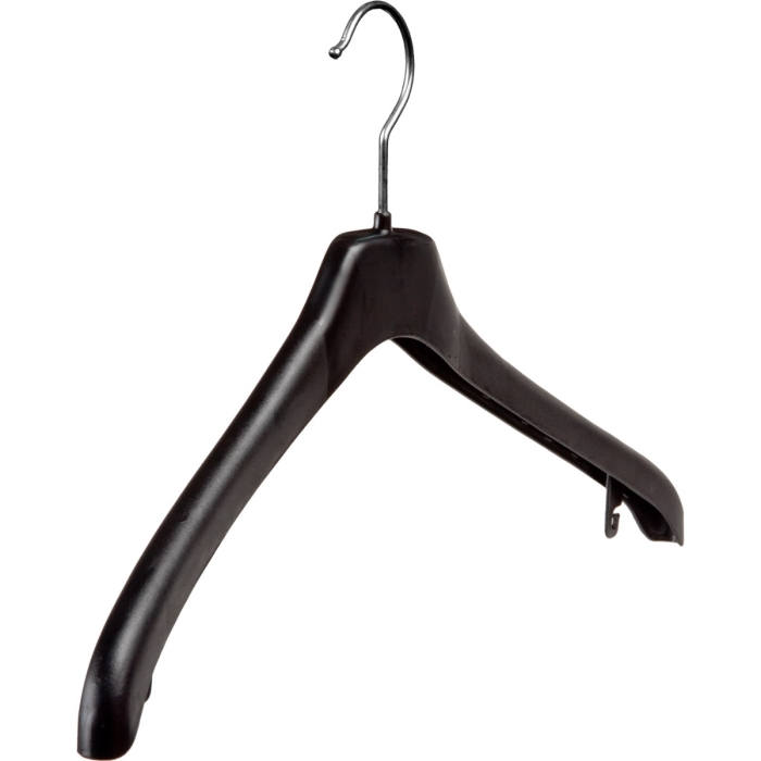 Kleiderbügel NF 41 schwarz ✓ verzinkter und drehbarer Haken ✓ Kunststoffbügel in schwarz ✓ Kleiderbügel leicht gewölbt ✓ mit Rockhaken an der Unterseite ✓ die Auflagenbreite beträgt 19 mm ✓ erhältlich in einer Breite von 41 cm