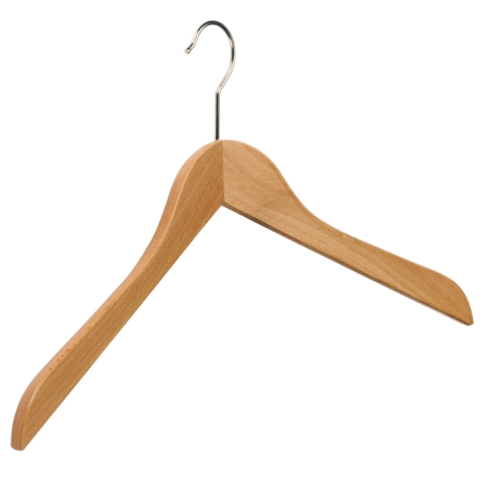 Der körpergeformte Kleiderbügel 200 aus massivem Buchenholz lässt Sie Ihre Kleidungsstücke problemlos aufhängen. Den Kleiderbügel gibt es neben der Farbe buche natur noch in weiß lackiert. Ein silberfarbig glänzender Haken rundet die stimmige Optik dieses Kleiderbügels ab. Die Bügelbreite des Holzbügels beträgt 45 cm. Besonders geeignet für Oberbekleidung, Mäntel und Jacken.
