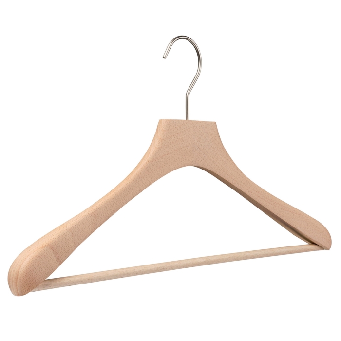 Kleiderbügel pieperconcept Duo Silk Herren mit Steg ✓ Haken 360°-drehbar ✓ Bügel aus Buchenholz ✓ Haken in silbermattem Finish ✓ Massivholz mit seidiger Oberfläche ✓ die Kleiderbügelbreite beträgt 43 cm ✓ Kleiderbügel mit breiter Schulterauflage