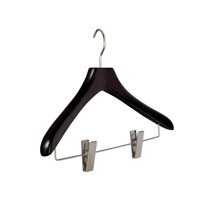 Kleiderbügel pieperconcept NOA women Clip brazil gebeizt ✓ Kleiderbügel aus Massivholz ✓ die Bügelbreite beträgt 41 cm ✓ die Auflagenbreite beträgt 22 mm ✓ die Hakenöffnung beträgt 45 mm ✓ Kleiderbügel mit Steg und zwei Clips ✓ drehbarer, silberfarbig matter Haken ✓ Kleiderbügel design by pieperconcept ✓ das Gewicht des Kleiderbügels beträgt ca. 260g