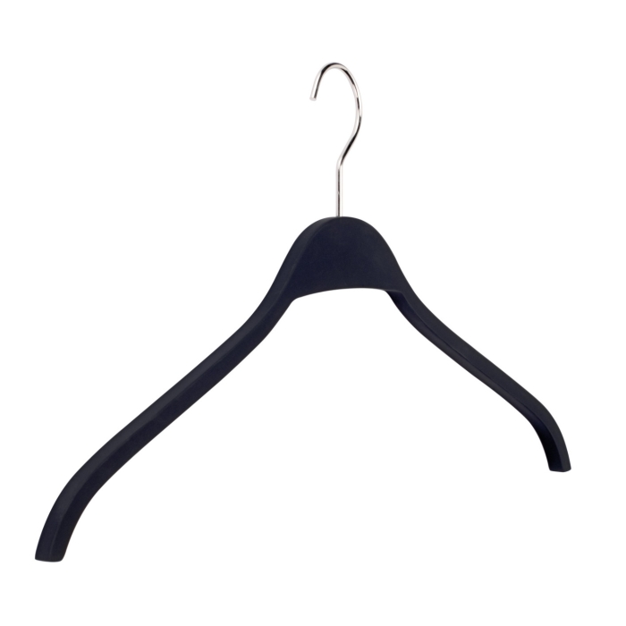 Kleiderbügel pieperconcept Nr.14 Softtouch schwarz ✓ Soft Touch Oberfläche in schwarz ✓ verchromter Kugelhaken, 4mm ✓ ansprechendes Design ✓ sehr leicht und platzsparend ✓ die Bügelbreite beträgt 45 cm ✓ der Kleiderbügel hat eine Auflagebreite von 12 mm ✓ rutschhemmend durch die Soft-Touch Beschichtung ✓ samtige und weiche Oberfläche, flache Bügelform