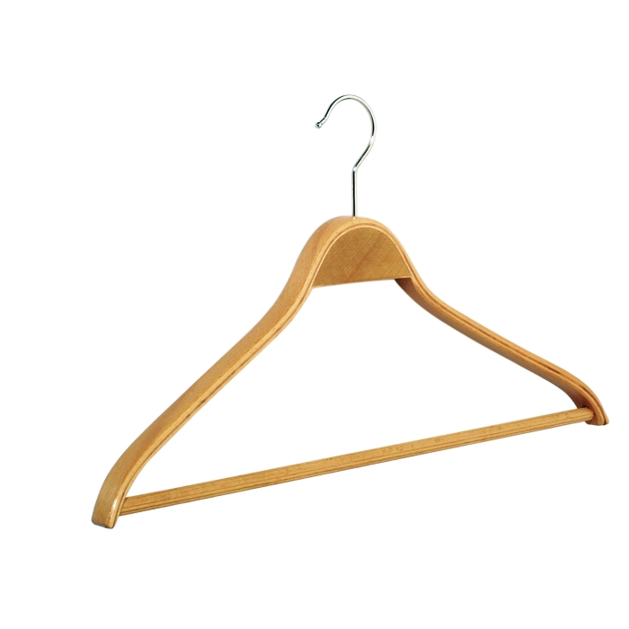 Kleiderbügel pieperconcept Nr.16 Steg buche ✓ mit rutschfestem Steg ✓ Kleiderbügel aus Schichtholz ✓ in der Farbe buche erhältlich ✓ die Bügelbreite beträgt 45 cm ✓ die Auflagenbreite beträgt 20 mm ✓ die Hakenöffnung beträgt 38 mm ✓ drehbarer, silberfarbig glänzender Haken ✓ Design made by pieperconcept ✓ das Gewicht des Kleiderbügels beträgt ca. 120g