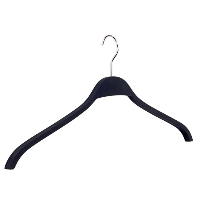 Kleiderbügel pieperconcept Nr.19 Softtouch schwarz ✓ Kleiderbügel aus Schichtholz ✓ in der Farbe schwarz erhältlich ✓ komplett rutschhemmend beschichtet ✓ der Kleiderbügel hat eine Breite von 43 cm ✓ die Auflagenbreite beträgt 12 mm ✓ Haken drehbar, silberfarbig glänzend