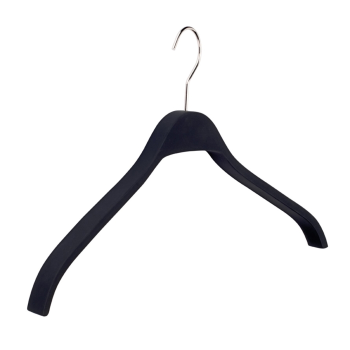 Kleiderbügel pieperconcept Nr.24 Softtouch schwarz ✓ Kleiderbügel aus Schichtholz ✓ in der Farbe schwarz erhältlich ✓ komplett rutschhemmend beschichtet ✓ der Kleiderbügel hat eine Breite von 45 cm ✓ die Auflagenbreite beträgt 25 mm ✓ Haken drehbar, silberfarbig glänzend