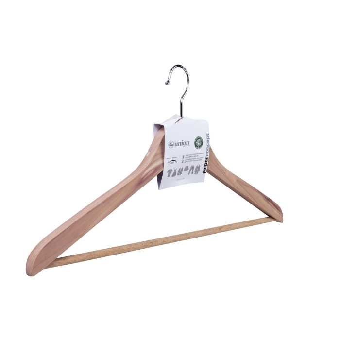 Kleiderbügel pieperconcept Schrankbügel Zedernholz ✓ mit praktischem Steg ✓ Kleiderbügel aus Massivholz ✓ die Bügelbreite beträgt 44 cm ✓ drehbarer, silberfarbig glänzender Haken
