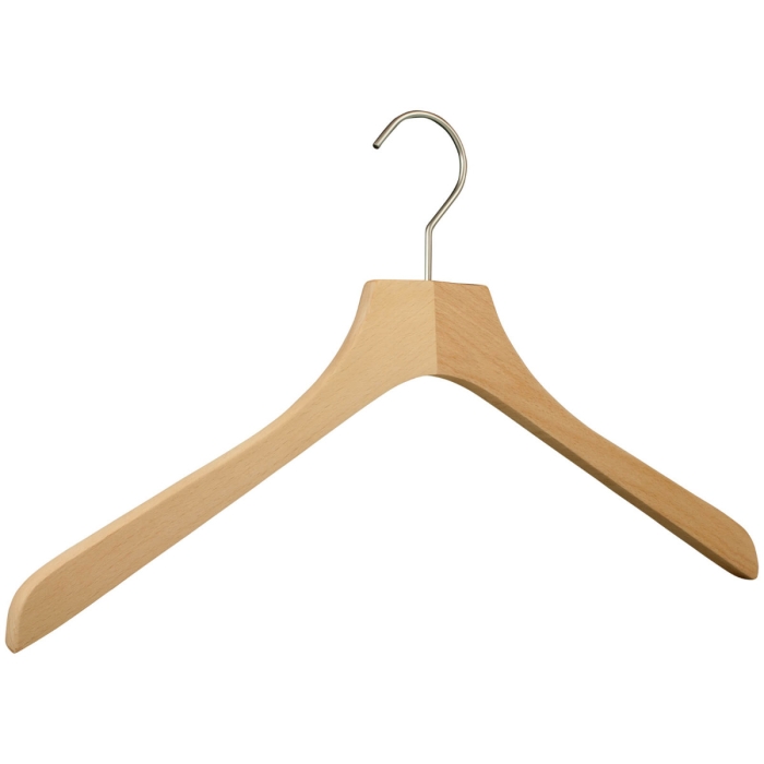 Kleiderbügel ROH 7651c buche ✓ Kleiderbügel aus Buchenholz ✓ natur unbehandelt, fein geschliffen ✓ die Hakenöffnung beträgt 42 mm ✓ Haken 4 mm matt, 360° drehbar ✓ die Auflagebreite beträgt 14 mm ✓ massive Ausführung, schwere Qualität ✓ gebogene Kleiderbügelform, körpergeformt ✓ das Gewicht des Kleiderbügels beträgt ca. 140 g ✓ erhältlich in einer Bügelbreite von 45 cm
