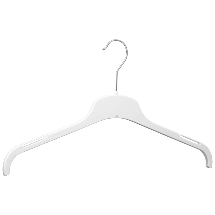 Kleiderbügel TU 43 weiss ✓ Kunststoffbügel in weiss ✓ verzinkter und drehbarer Haken ✓ Wäschebügel aus Kunststoff ✓ mit Rockhaken an der Oberseite ✓ die Auflagenbreite beträgt 10 mm ✓ erhältlich in einer Bügelbreite von 43 cm