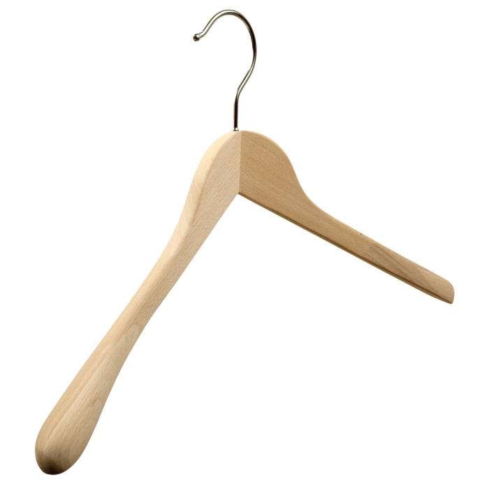 Kleiderbügel 229 44/30 ✓ Buchenholz natur lackiert ✓ vernickelter Kugelhaken, drehbar ✓ Formbügel mit verbreiteter Schulterauflage ✓ erhältlich in einer Breite von 44 cm ✓ der Kleiderbügel hat eine Auflagebreite von 30 mm