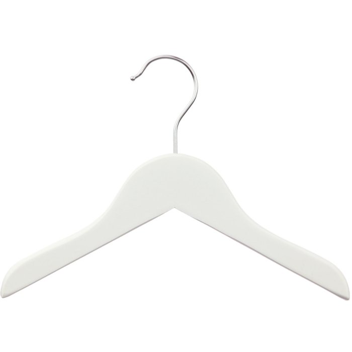 Kleiderbügel C 147 W ✓ Lotusholz weiß lackiert ✓ vernickelter Kugelhaken, drehbar ✓ Flachbügel aus Lotusholz ✓ die Auflagebreite beträgt 12 mm ✓ erhältlich in der Breite 25 cm
