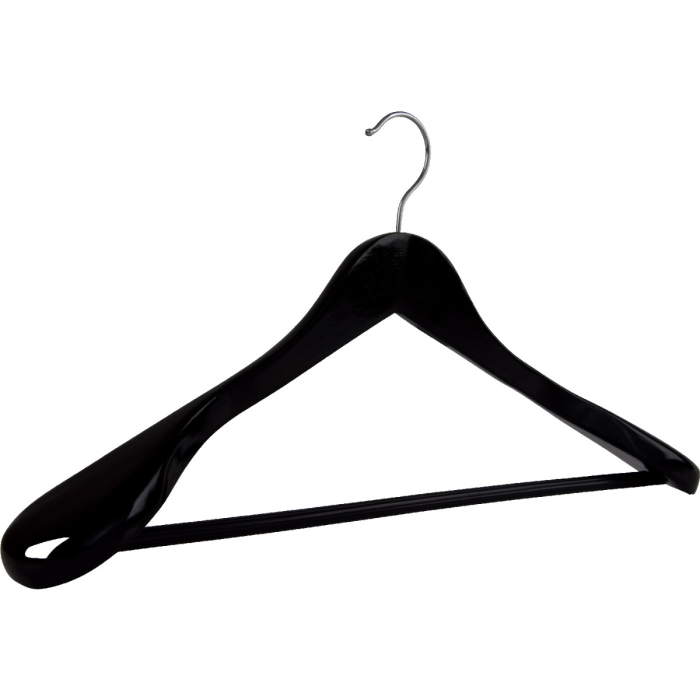 Kleiderbügel C 255 RS ✓ Lotusholz schwarz lackiert ✓ vernickelter Kugelhaken, drehbar ✓ mit rutschfester Stegummantelung ✓ erhältlich in der Breite: 44,5 cm ✓ Formbügel aus Lotusholz, gewinkelt ✓ der Kleiderbügel hat eine Auflagebreite von 50 mm