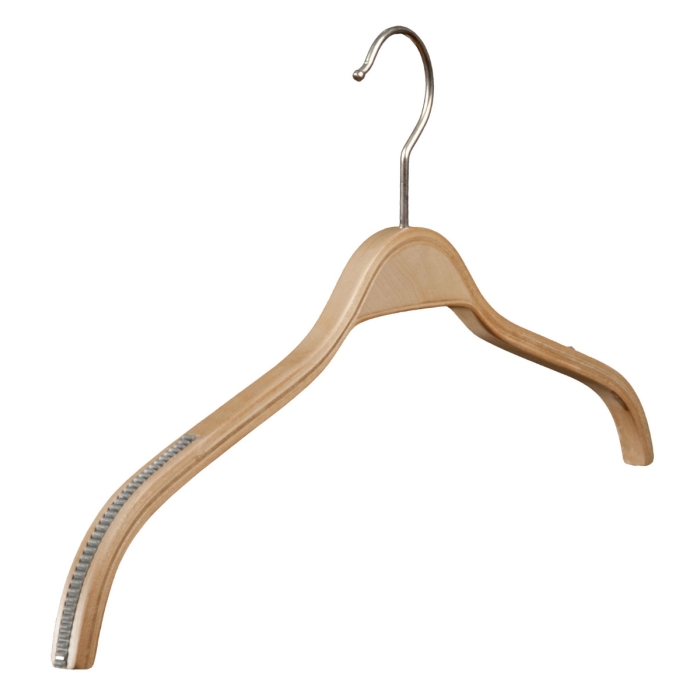 Kleiderbügel CL 147 RI ✓ Schichtholzbügel aus Lotusholz ✓ Kleiderbügel natur lackiert ✓ vernickelter Haken, drehbar ✓ sehr leicht und platzsparend ✓ mit Rippeneinlagen aus Gummi ✓ erhältlich in einer Breite von 42 cm ✓ elegantes ansprechendes Design ✓ der Kleiderbügel hat eine Auflagebreite von 12 mm