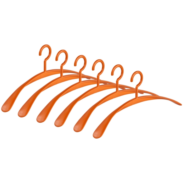 Kleiderbügel WING orange 6er Set ✓ der Kleiderbügel ist körpergeformt ✓ die Kleiderbügelbreite beträgt 45 cm ✓ die Auflagenbreite beträgt ca. 42 mm ✓ aus Polypropylen (PP) Kunststoff gefertigt ✓ geschwungenes Design und edles Aussehen ✓ breite kleidungsschonende Schulterauflagen