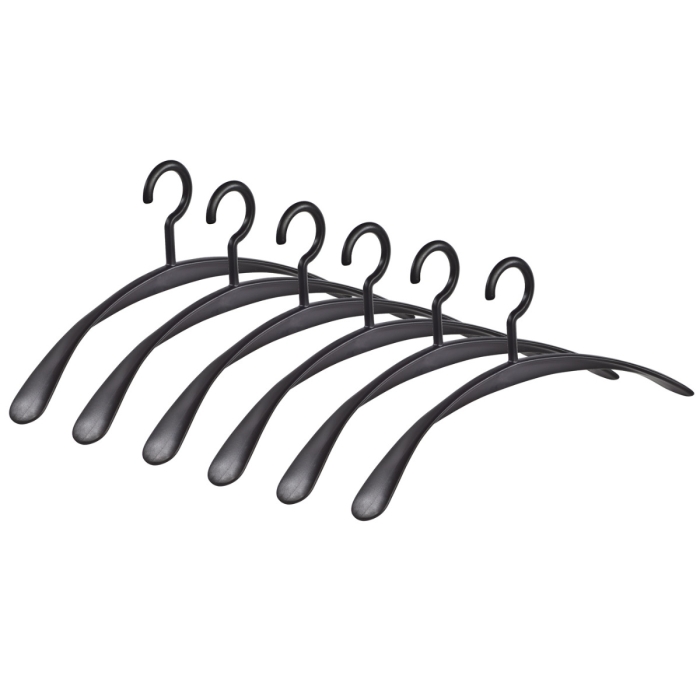 Kleiderbügel WING schwarz 6er Set ✓ der Kleiderbügel ist körpergeformt ✓ die Kleiderbügelbreite beträgt 45 cm ✓ die Auflagenbreite beträgt ca. 42 mm ✓ aus Polypropylen (PP) Kunststoff gefertigt ✓ geschwungenes Design und edles Aussehen ✓ breite kleidungsschonende Schulterauflagen