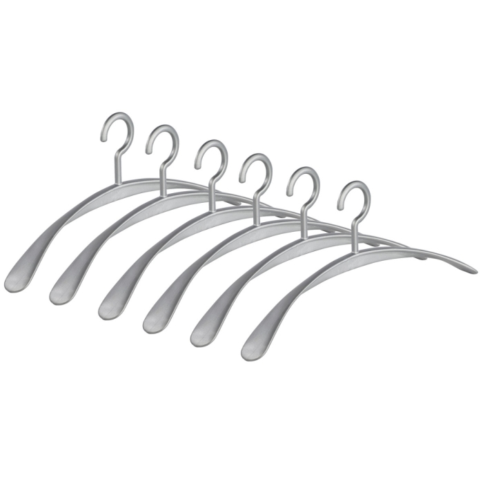 Der Kleiderbügel WING in edlem Silber vereint erstklassiges Design mit hoher Funktionalität und ist ein wahres Highlight für Ihren Kleiderschrank. Mit unserem handlichen 6er-Set von Bügeln behalten Sie stets den Überblick über Ihre Kleidung – praktisch und stilvoll zugleich.