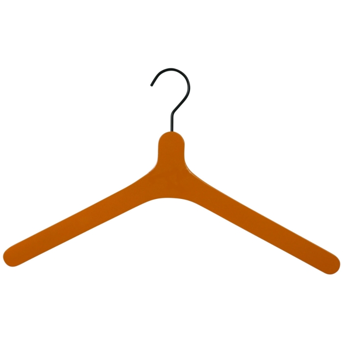 Kleiderbügel ZOOM orange ✓ 4 mm Haken in schwarz ✓ aus Buchenholz gefertigt ✓ in der Farbe orange lackiert ✓ die Hakenöffnung beträgt 40 mm ✓ der Haken ist 360° drehbar ✓ die Auflagenbreite beträgt 10 mm ✓ die Kleiderbügelbreite beträgt 44 cm ✓ flache platzsparende Kleiderbügelform