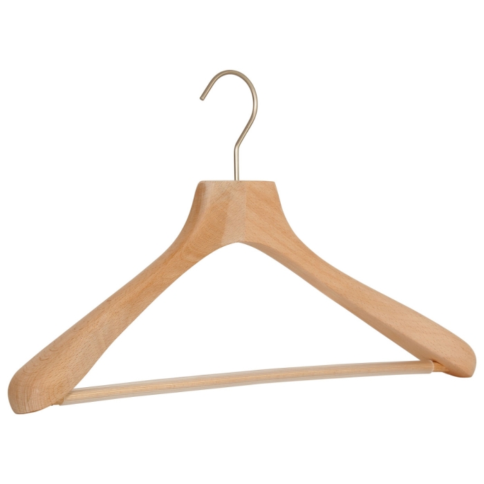 Kleiderbügel NOA men buche natur ✓ Kleiderbügel aus Massivholz ✓ Buchenholz natur roh geschliffen ✓ die Bügelbreite beträgt 45 cm ✓ die Auflagenbreite beträgt 40 mm ✓ die Hakenöffnung beträgt 40 mm ✓ Haken drehbar, silberfarbig matt
