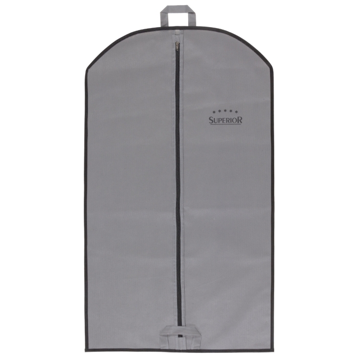Kleidersack SUPERIOR grau ✓ atmungsaktive und abriebfest ✓ Material Vliesstoff (PP, non-woven, 80 g/qm) ✓ zwei Schlaufen für einfachen Transport ✓ mit mittigem Metall-Reißverschluss ✓ Größe 60 cm x 100 cm ✓ inkl. Aufdruck Superior auf der Vorderseite ✓ zur staubfreien Aufbewahrung von Textilien ✓ außen strukturiert, innen glatte Oberfläche ✓ mit Schlaufe an der Ober- und Unterseite